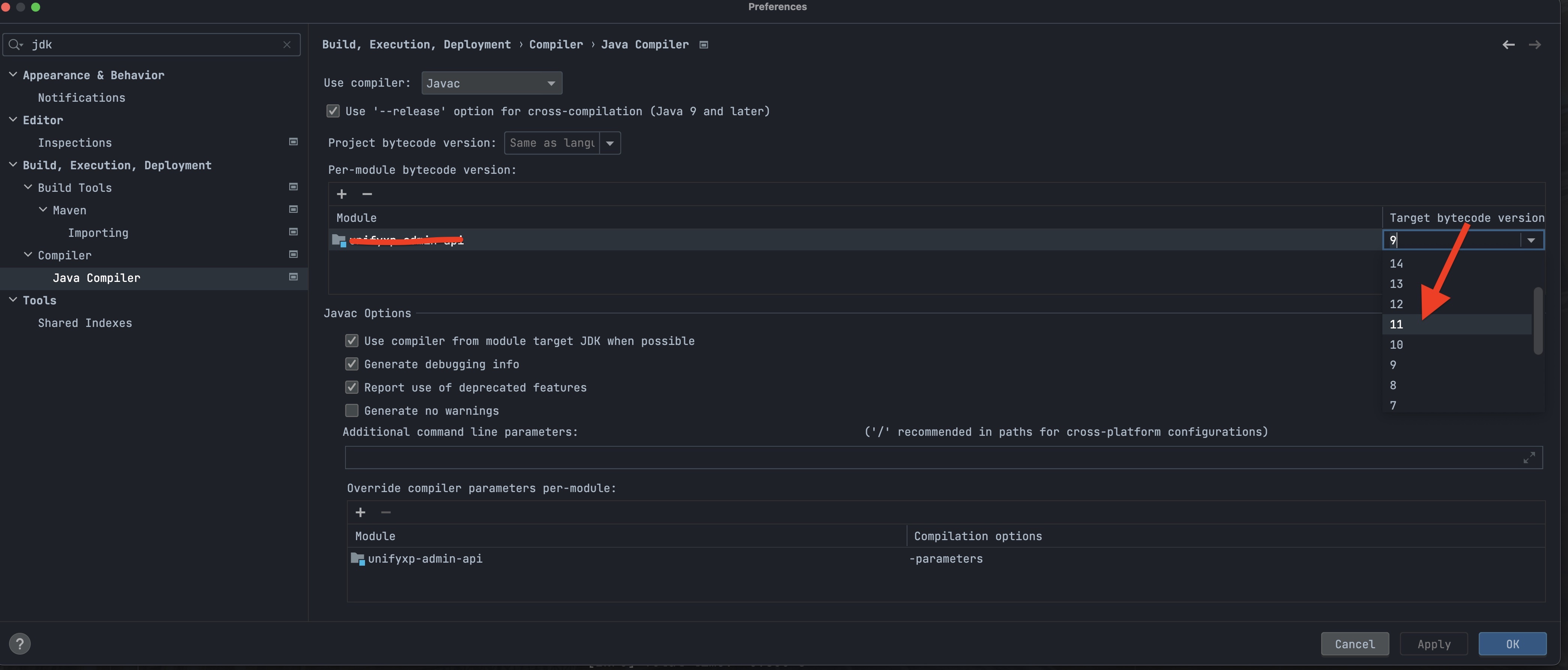 So go to check your pom.xml (maven) to make sure no JDK 8 but at lease 9, such as below example: