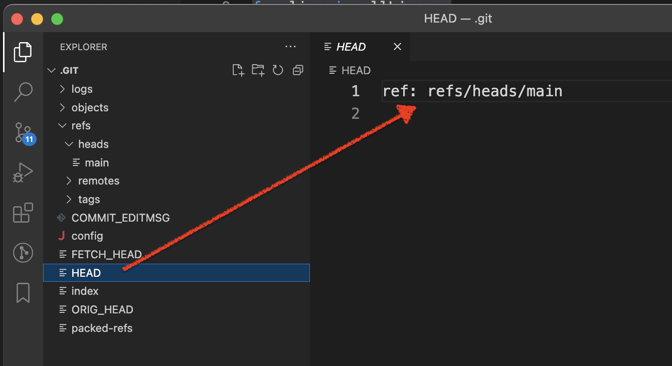 A symbolic ref is a regular file that stores a string that begins with ref: refs/. For example, your .git/HEAD is a regular file whose contents are ref: refs/heads/master.