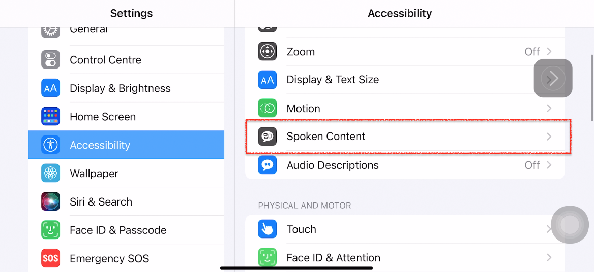 - For example, you can also toggle on-screen content speak button.