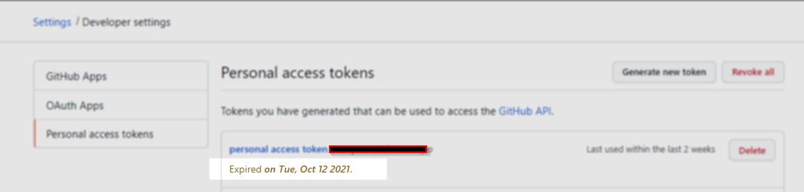 - If it’s expried, go to genearate a new one via https://github.com/settings/tokens/new